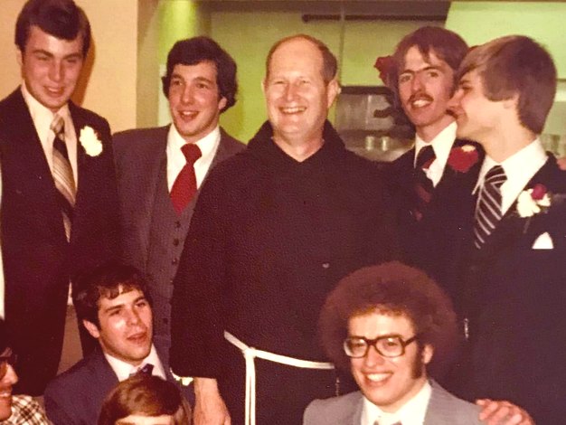 Our brother Mick Joyce, on the staff of Borromeo Seminary in Wickliffe, OH, posted this college photo with our confrere Robert L. McCreary (+2023). Mick and Chip are on the right. Another priest of the class, Fr. Bill McGuirk of the Diocese of Greensburg PA, is bottom left.