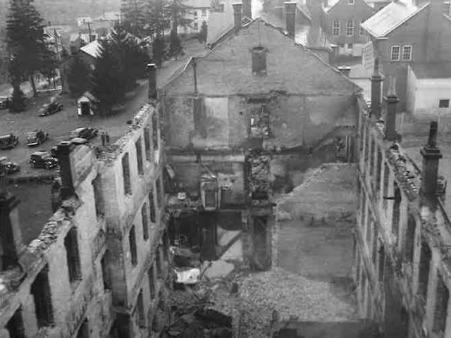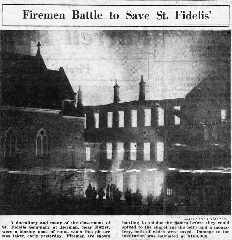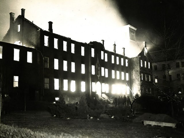 The students were asleep in the senior dormitory on the third floor as the flames roared upward from a workshop. Two students, awakened by smoke, shouted the alarm and awakened Father Victor Green.
