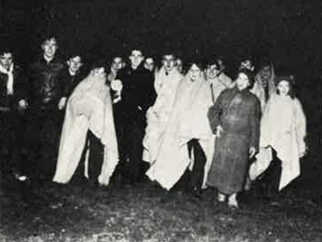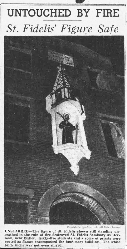 Quietly, he ordered them to ring the alarm bell and arouse the other seniors. Clad in nightclothing and wrapped in blankets, the lads followed the priest down a fire escape at the rear of a new wing of the building.
